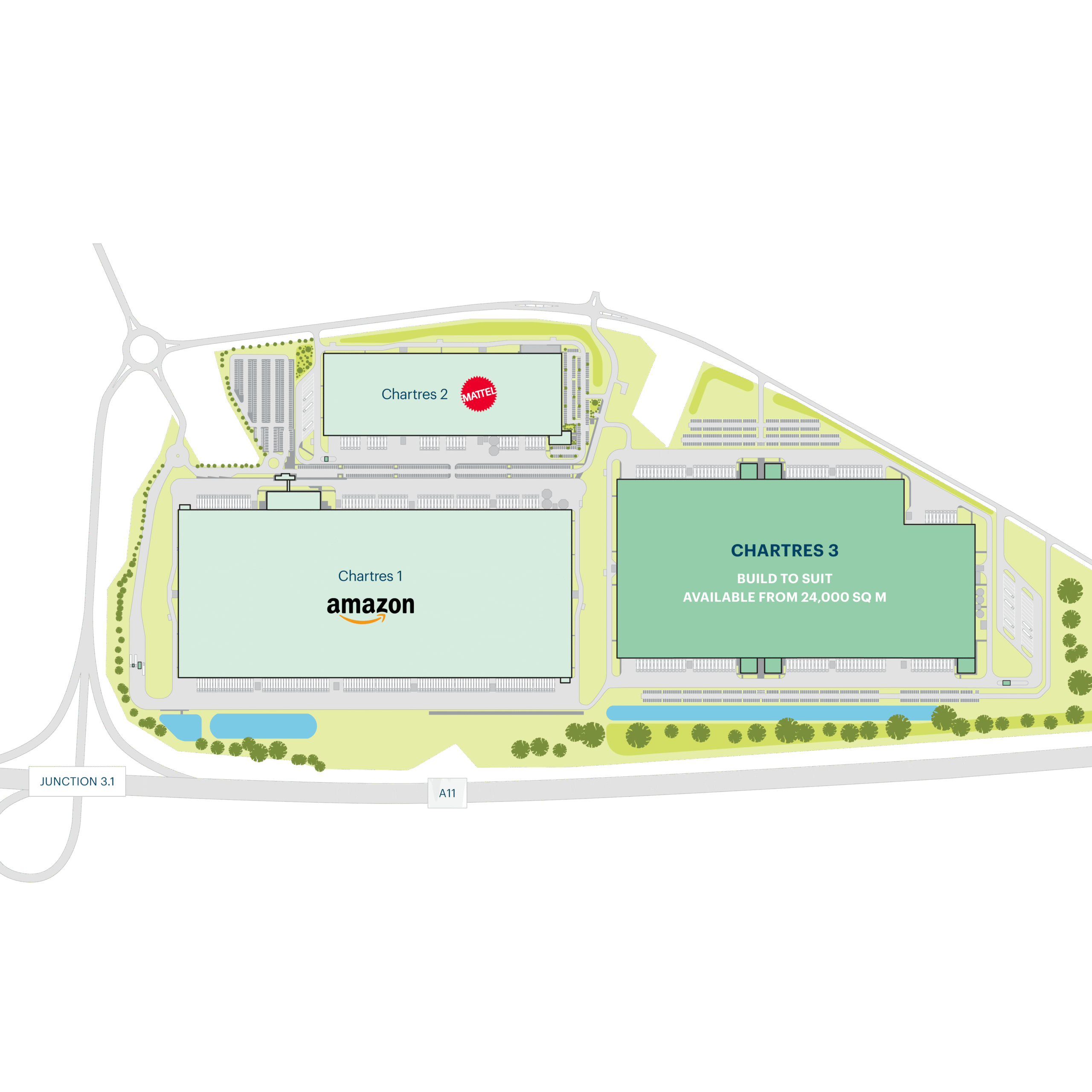 Mountpark Chartres is a state of the art logistics development of three buildings totalling 268,000 sq m. Chartres 1 and Chartres 2 are both occupied by major international companies. Chartres 3 offers flexible design and build options from 24,000 sq m upwards, with a 12 - 15 month construction period.